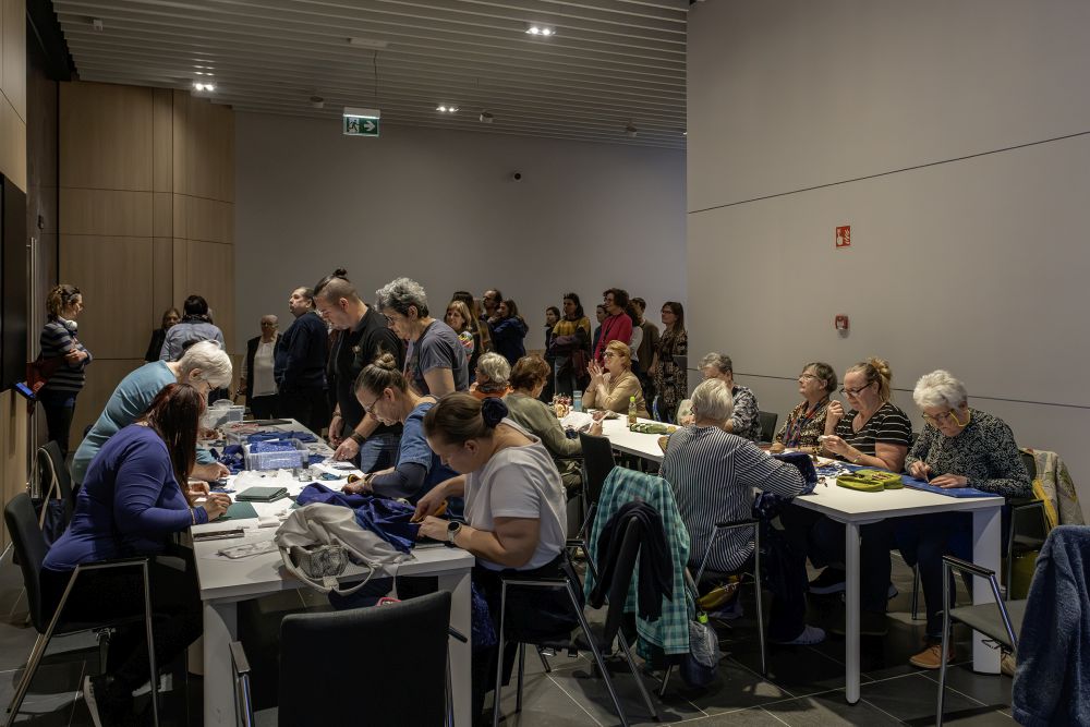 Elmeséltük már az utat, ahogyan régi és új kékfestők eljutottak a Néprajzi Múzeumba. De reméljük a kiállítás megnyitója még csak az első állomás volt. (Azóta kétszer hosszabbították a kiállítás zárásának idejét – hogy ez megálló, állomás? Bármi is, nagy sikert jelez.) Mi pedig folytatjuk a munkát, és igyekszünk minél több helyen megmutatni, minél több foltvarróval megismertetni azt a csodát, ami egy réges-régi – sajnos eltűnőben lévő – mesterség és egy új, (reméljük) divatos hobbi találkozásából születik.